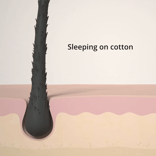 Contrairement au coton qui frotte et abîme les cheveux en provoquant frisottis, nœuds et pointes fourchues, la soie réduit la friction et permet à votre chevelure de glisser en douceur pendant la nuit.